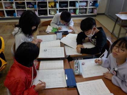 子供たちは、国語科で「組み合わせできる漢字」について学習しました。班の友達と協力しながら漢字を探す姿や、クイズを出し合って取り組む姿などが見られました。活動を進める中で多くの発見があり、漢字への関心が高まっている様子でした。どの班も一人一人が楽しみながら学習していました。