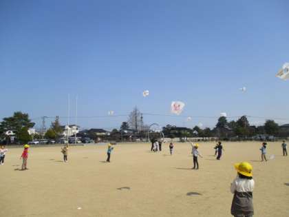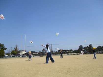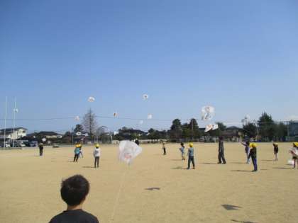 風にのって空高く可愛い凧が上がりました。とても楽しんで活動し、「またやりたい」と言って持ち帰りました。