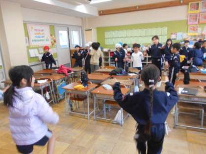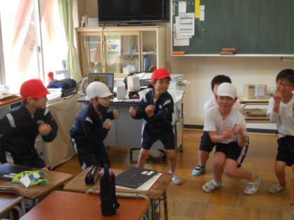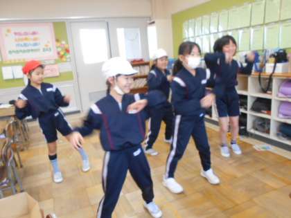 体育の時間に曲に合わせて楽しく踊りました。振り付けは、出たとこ勝負ですが。息の合ったダンスを披露していた2年生です。体を動かすのが大好きな2年生です。