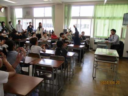 5年1組の学習参観の様子です。社会科「わたしたちの国土」の学習を行っています。