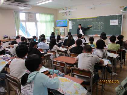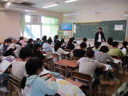 5年3組の学習参観の様子です。社会科「わたしたちの国土」の学習を行っています。