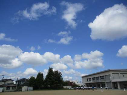 クロムブックで雲の写真を撮ったり天気に関する情報を集めたりしながら、雲と天気との関係について考えています。今日は雲の種類に関心をもって調べ、「一昨日はあまり雨は降らなかったけれど灰色の雲だったから高層雲かもしれない」「今日の雲はわた雲とも呼ばれる積雲だね」と盛り上がっていました。知識が増えると景色の見え方が変わりますね。