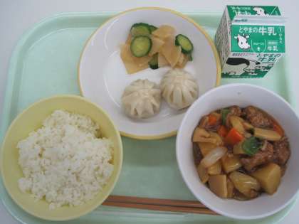 たまねぎ、にんじん、干し椎茸を炒め、揚げた豚肉、