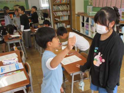 ジェスチャーを付けて、相手に伝わるように英語で話しました。