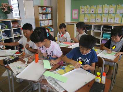 ビー玉を転がして楽しく遊ぶ「コロコロガーレ」作りに取り組んでいます。子供たちは工作用紙や段ボール等の材料を組み合わせ、自分の思い描くコースになるよう試行錯誤しています。完成が楽しみです。