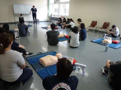 今年度も、講師の先生をお迎えして「救命救急講習」を行いました。