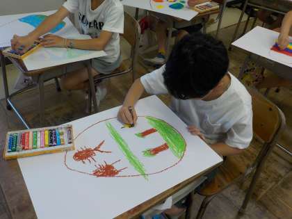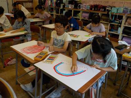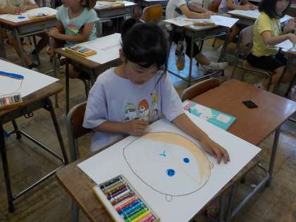 図画工作科で「ふしぎなたまご」を描いています。自分のイメージを膨らませながら、絵の具やクレヨンを使って、好きな形や色を選んでいます。どんなたまごになって、何が生まれてくるか楽しみです。