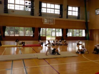 体育の時間にマット運動をやっています。今は習得した技を自分で考え、連続で回転をする練習をしています。何度も繰り返し、友達と教え合いながらでレベルアップさせていく姿が素敵です。