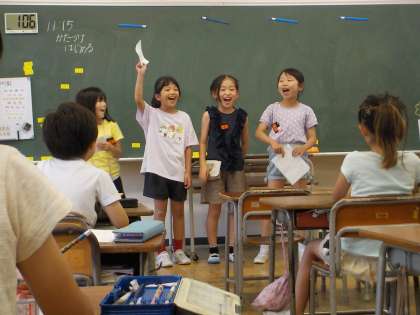 2年生になって全員が新しい係活動に取り組んでいます。今日はマンガ係が自分たちで考えた物語を、劇にして発表しました。この日のために毎日練習をして、本番では楽しい時間を過ごしました。次はどの係が発表するか楽しみです。