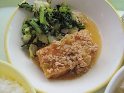 肉味噌には、しょうが、にんにく、ねぎ等の香味野菜を使いました。