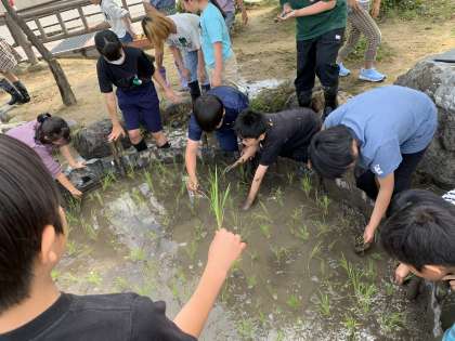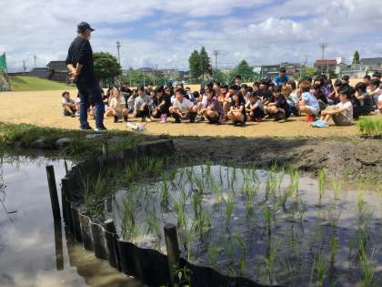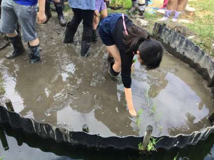 6月の始め、米作りをしておられる地域の方に教えていただきながら、新庄の森の水田に田植えをしました。