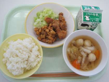 水で戻した大豆は米粉をまぶして油でカリッと揚げました。