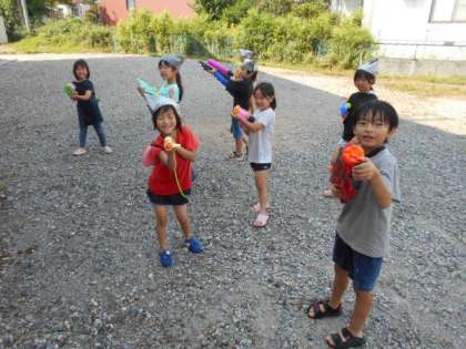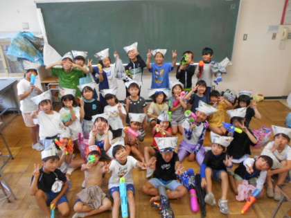 今日は、学級集会・水鉄砲大会を行いました。みんなびしょびしょになりながら、楽しんでいました。