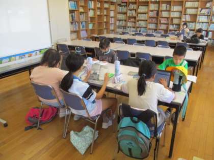 図書室に来た子供たちは、夏休みの宿題を進めたり読書したりするなど、図書室を有効に活用しています。