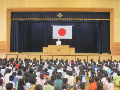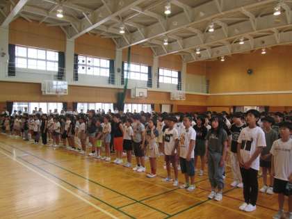 全校児童が体育館に集まって、2学期の始業式を行いました。校長先生からは、自分の頭で考えて、自分で決めたことに取り組んでほしいというお話がありました。さあ、2学期のスタートです。まだまだ暑い日が続きます。体調に気を付けて、『思いやりいっぱい』『学びいっぱい』『元気いっぱい』を目指す新庄っ子でいてほしいです。