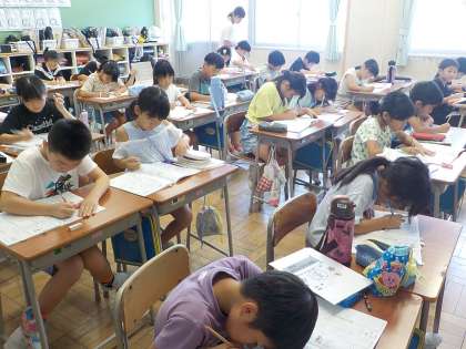 自分が目標にしていたところまで進まなかったときには、自分で時間を見付けて取り組んだり、難しい漢字はノートに練習してから次の漢字に進んだりするなど、一学期の学びを活かして学び方を変えていこうとする姿が見られ、子供たちの成長を感じています。