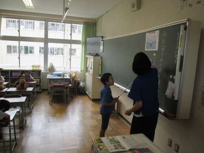 2年1組の学習参観の様子です。国語科「みの回りのものを読もう」の学習を行っています。