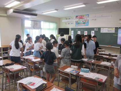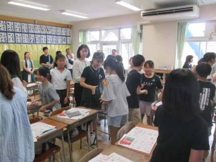 5年3組の学習参観の様子です。外国語科「Unit4『Who is this?』身近な人について紹介し合おう」の学習を行っています。