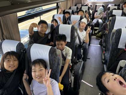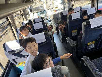 みんな元気にバスに乗り、子どもの村へ出発しました。