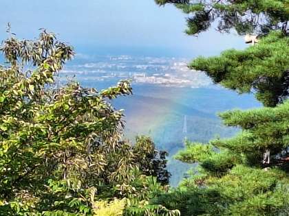 クラフト工作、五右衛門風呂の途中、雨が降り、虹が現れました。