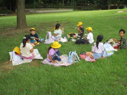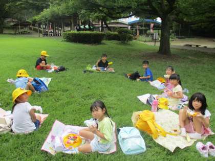 昼食後は芝生で思い思いの遊び方で遊ぶ姿が見られました。