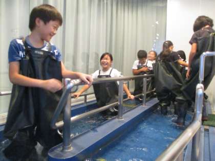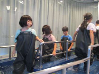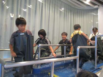 四季防災館に行って、災害や自然の特性を体験しながら学んできました。流水体験では、水深や水の流れによって歩きづらさが変わることを実感していました。