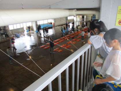 午後の様子です。新湊漁港では、臨場感あふれる蟹のセリを見学し、富山湾の恵まれた自然環境についても教えていただきました。近畿大学水産研究所の実験場では、養殖技術を向上させるための研究の様子を見せていただきました。子供たちの質問にたくさん答えていただき、学びの多い一日になりました。