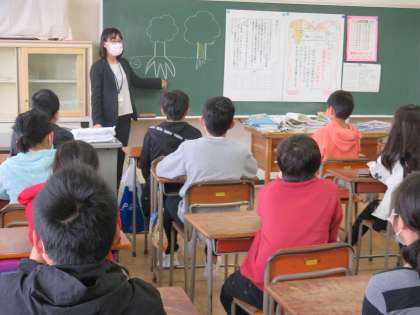 放送で、着任式・始業式を行った後、各クラスで担任と子供たちが顔合わせをしました。机を離して、窓を開けて換気をしながらの学級開きの時間となりました。