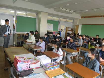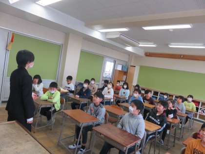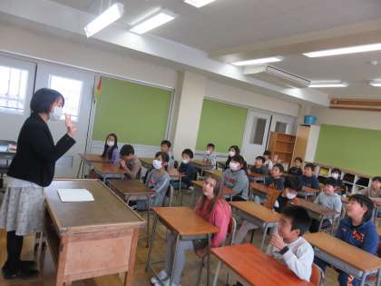 放送で、着任式・始業式を行った後、各クラスで担任と子供たちが顔合わせをしました。机を離して、窓を開けて換気をしながらの学級開きの時間となりました。