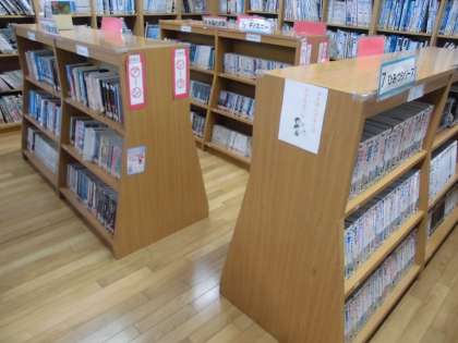 たいいくかんのちかくにあります。たくさんのほんがおいてあります。