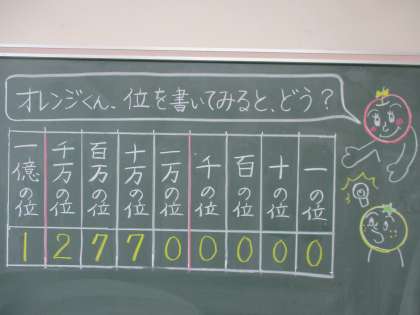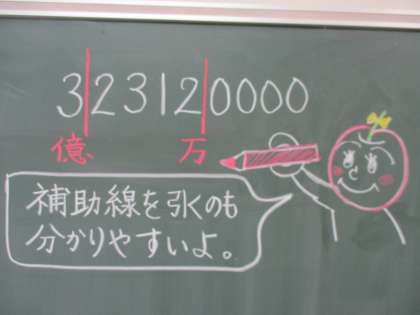 りんごちゃんが1億より大きい数を読むヒントをくれたよ。