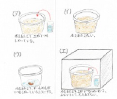 (ア)、(イ)、(ウ)、(エ)のうち、どれとどれを比べると、「水」が必要かどうかを調べられるでしょうか。