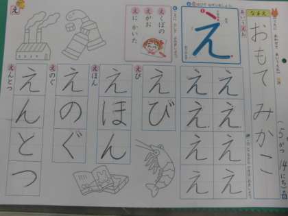 1ねんせいのみなさん、じかんわりにそってがくしゅうをしていますか。しゃしんのかわいいえは、たじりせんせいがかいてくれました。ひらがなのれんしゅうぷりんとはおもてせんせいがかきました。
