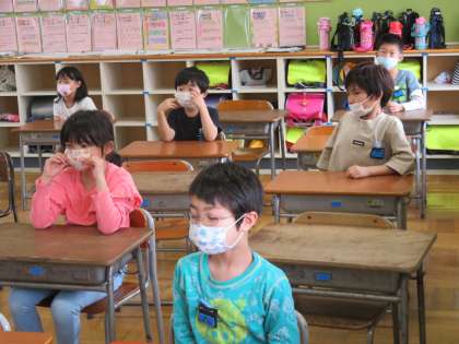 換気や座席に配慮し、分散登校を始めました。