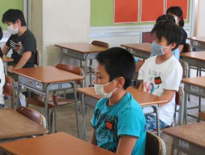換気や座席に配慮し、昨日から分散登校での学習を始めました。