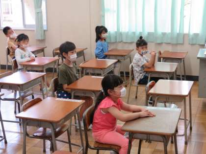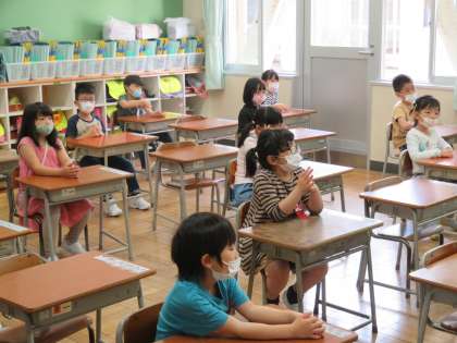 換気や座席に配慮し、昨日から分散登校での学習を始めました。
