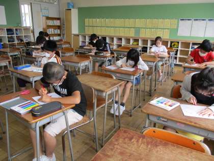 図画工作科の学習に真剣に取り組んでいるAグループです。