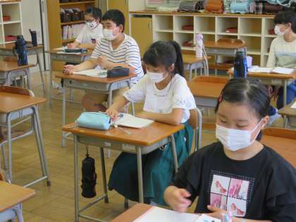 各クラスを3グループに分け、10人前後の人数で学習しています。