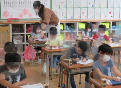 マスクや手洗い、換気や座席等に配慮しながら、学校が再開しました。