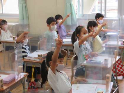マスクや手洗い、換気や座席等に配慮しながら、学校が再開しました。