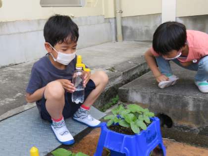 「早く花が咲くといいな」などとつぶやきながら、大事そうに水をやっています。