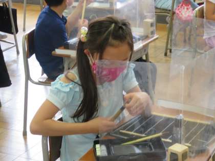 用具の名前を覚えたり、筆をほぐしたりしています。
