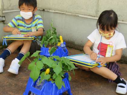 あさがおの観察をしています。