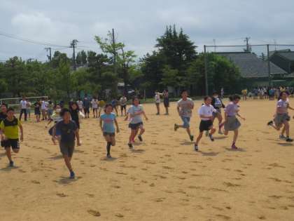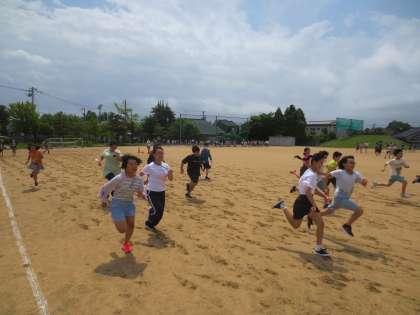 パワトレがスタートしました。6年生はグラウンドで50m走に取り組みました。元気よく走る子供たちです!