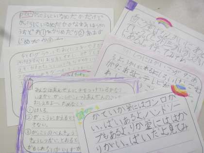 思いを文章や絵に表しているところです。思いが伝わるといいですね。