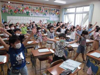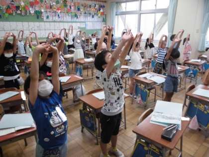 あいにくの雨だったため、今日のパワトレは教室で行いました。新庄っ子体操がばっちりそろうようになってきました。