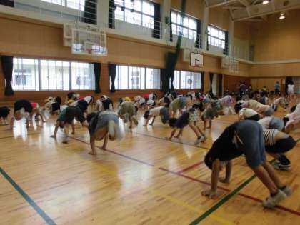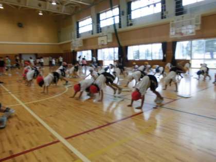 今日もあいにくの雨で、体育館でパワトレを行いました。20秒間5つのメニューを3セット行いました。終わった後の3015の色塗りも楽しみの一つです。