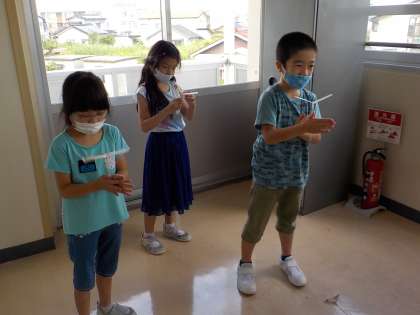 休み時間にも、友達と一緒に飛ばす姿が見られました。