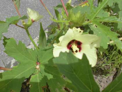 オクラもヒマワリも花が咲きました。写真はオクラの花です。