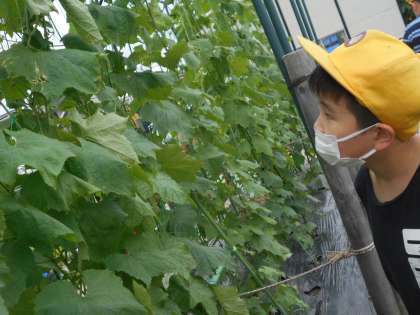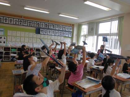 理科の学習で、暑くなると・夏の星の学習をしました。子供たちは、気温が高くなったことによってより大きく成長するヘチマを見て、驚いていたり自分の身長と比べていたりしていました。また、夏の星の学習は、星座早見の使い方を確認しました。夜空を観察しようと意欲を高めています。